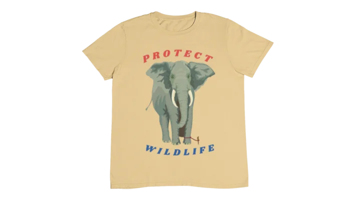 Design a T-shirt using earthy tones to reflect natural habitats, featuring images of endangered wildlife such as elephants, tigers, or whales. Incorporate a strong call to action like “Stand Up for Wildlife” to highlight the importance of conservation.