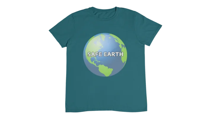 For an eco-friendly T-shirt design, use green and blue to symbolize nature and the planet, incorporating images of the Earth, trees, and leaves. Feature a stylized Earth encircled by green leaves, and include a slogan such as “Our Planet, Our Responsibility” in an eco-friendly font.