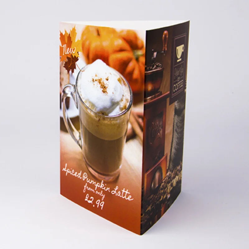 A6 Table Talkers measure 105 x 148 mm (before folding). They are designed to be compact, making them perfect for table displays without taking up too much space.
