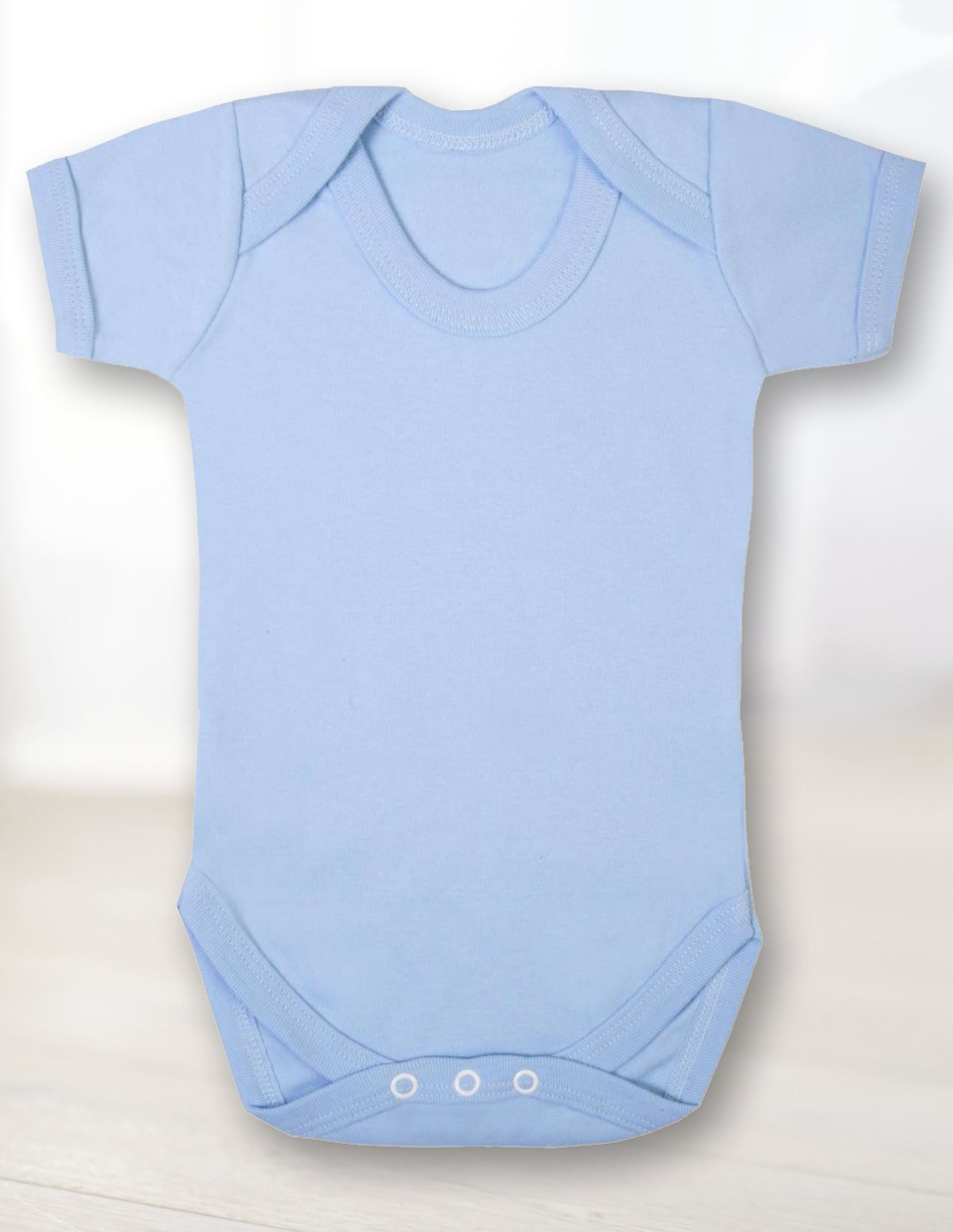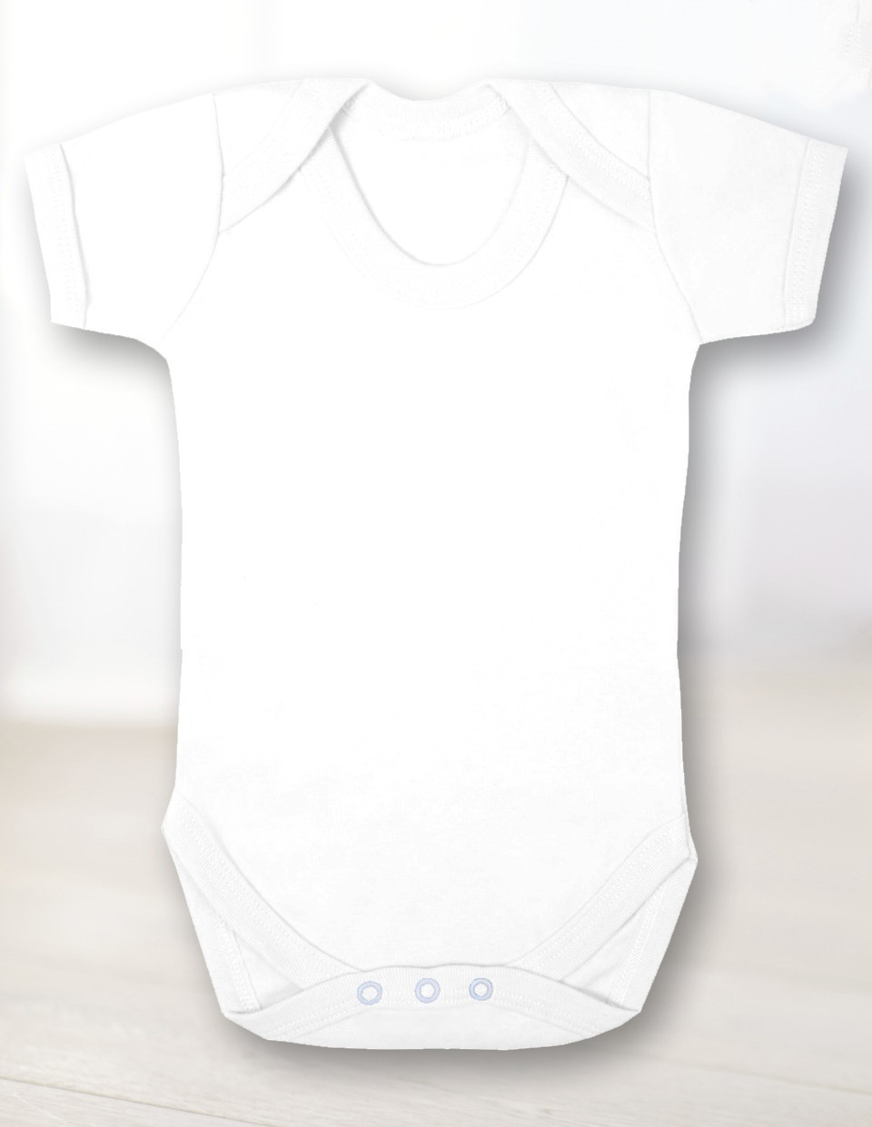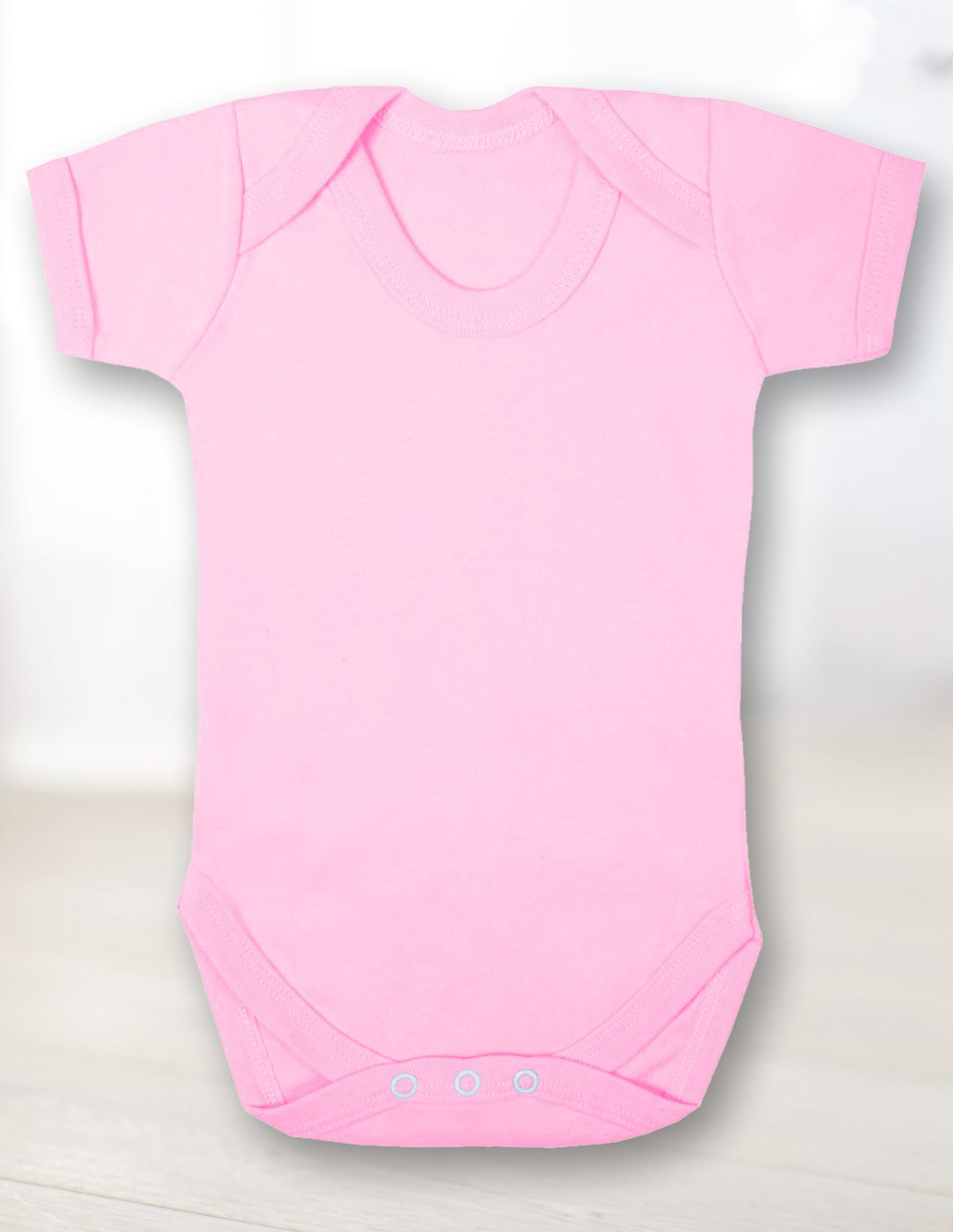 Delightfully soft 100% cotton short-sleeved baby bodysuit for newborns up to 18 months. With three popper fastenings for easy changing, this machine-washable essential is available in a wide range of colours and eligible for VAT-free pricing and bulk discounts.