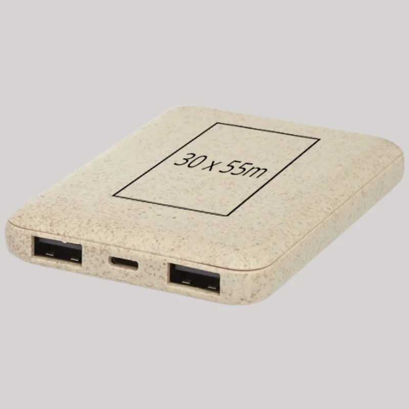 Promote your business with sustainability in mind using our Wheat Straw Power Banks. Crafted from a biodegradable wheat straw and recycled plastic blend, these portable chargers offer reliable performance while reducing reliance on traditional plastics. With a slim, lightweight design and 5000mAh capacity, they deliver both practicality and eco-friendly branding.